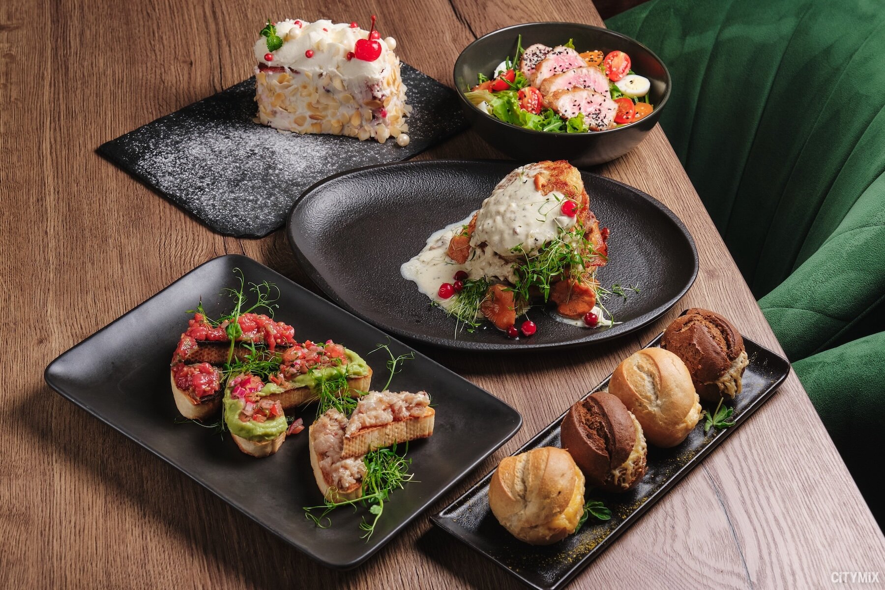 - Тапасы: с тартаром из говядины, с копченой макрелью, с гуакамоле и острой сальсой.