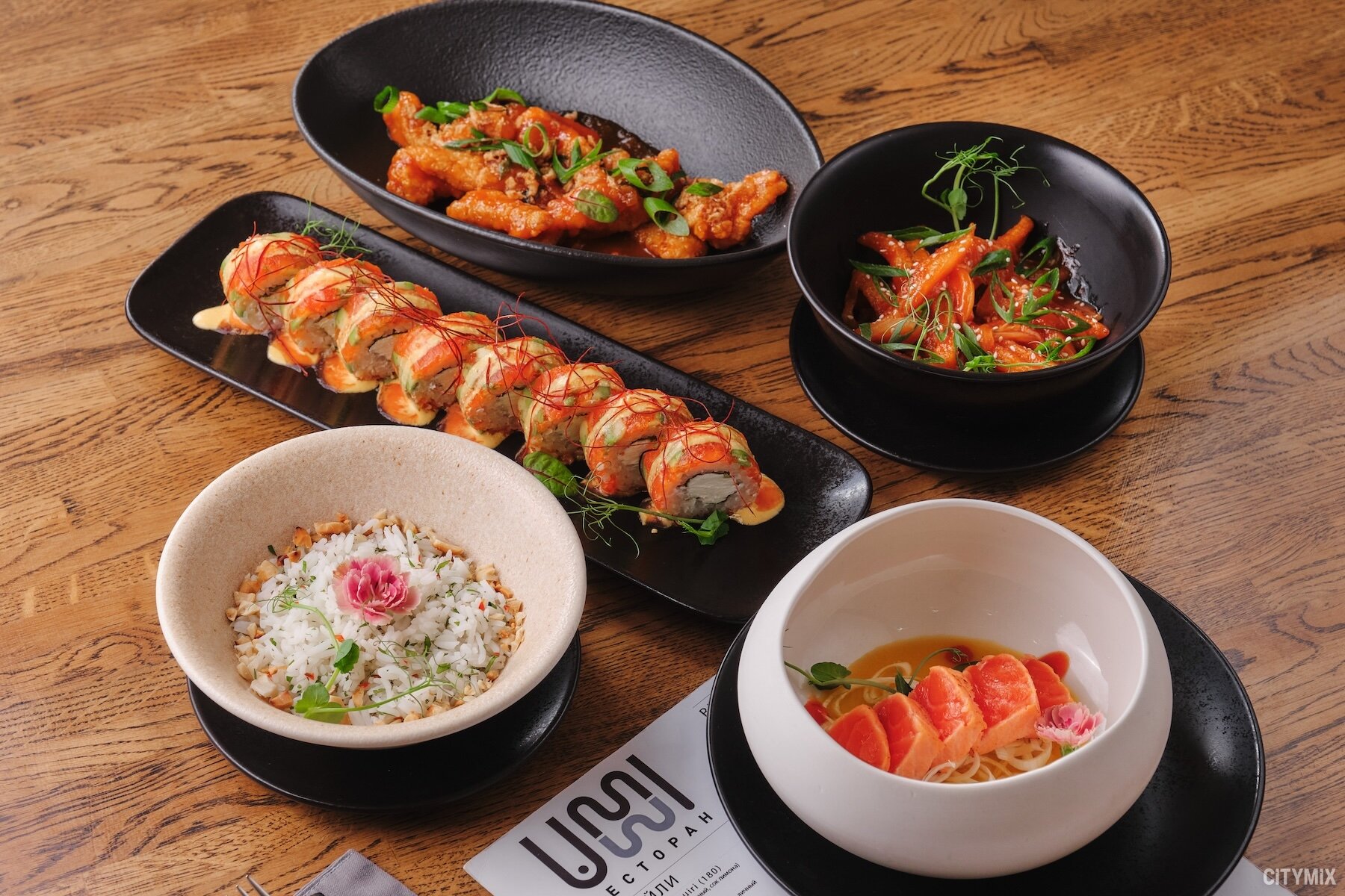 - Beef Roll (роллы с «рваной» говядиной BBQ, укутанные в лист «нори» и доведенные до вкуса, под сырной «шапкой», в гриле).