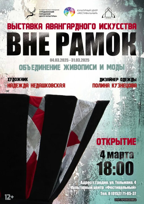 Выставка авангардного искусства «Вне рамок» представляет собой смелый эксперимент, объединяющий живопись и моду. Выставка совместно с художницей Недашковской Надеждой и дизайнером одежды Кузнецовой Полиной.