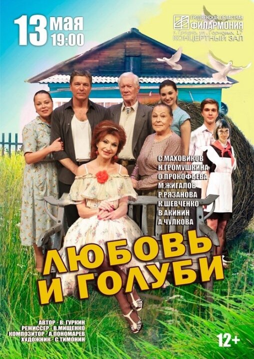 Всенародно любимая комедия и всенародно любимые актеры. В спектакле по пьесе В. Гуркина «Любовь и голуби». Лиричную, трогательную и невероятно смешную историю любви, измены и прощения вы увидите в исполнении трех поколений «звезд» российского театра и кино, от легендарных актеров, любимых с детства, до новых, ярких восходящих «звезд». (Сериалы «Молодежка» и «Вечный отпуск»). Актеры не только сыграют, но и споют, т.к. история у нас еще и музыкальная.