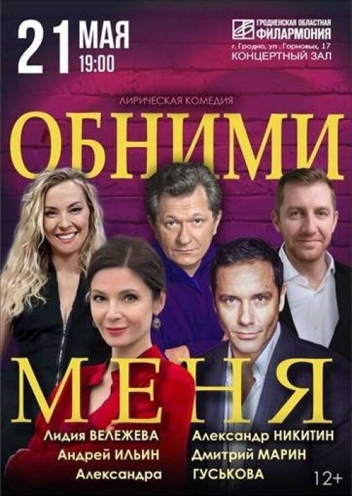 В спектакле "Обними меня" на сцене встречаются звезды популярных проектов, представляя зрителям сочетание юмора и эмоциональной глубины. История рассказывает об одной супружеской паре, которая тихо-мирно жила своей жизнью. Появление нежданных гостей нарушает семейную идиллию. Неожиданный поворот событий ставит всех героев перед странным выбором… Cюжет держит зрителя в тонусе и интригует. Спектакль живой, в нем есть атмосфера, энергетика, юмор, оптимизм, настроение и непредсказуемый финал! Актеры делятся самыми искренними эмоциями, заставляя нас смеяться и плакать вместе с ними.