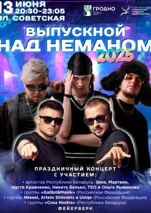 с 20:45 до 21:40 — праздничный концерт. Выступление артистов Беларуси: Зена, Мартвин, Настя Кравченко, Никита Белько в хореографическом сопровождении, ТЕО и Ольга Рыжикова.