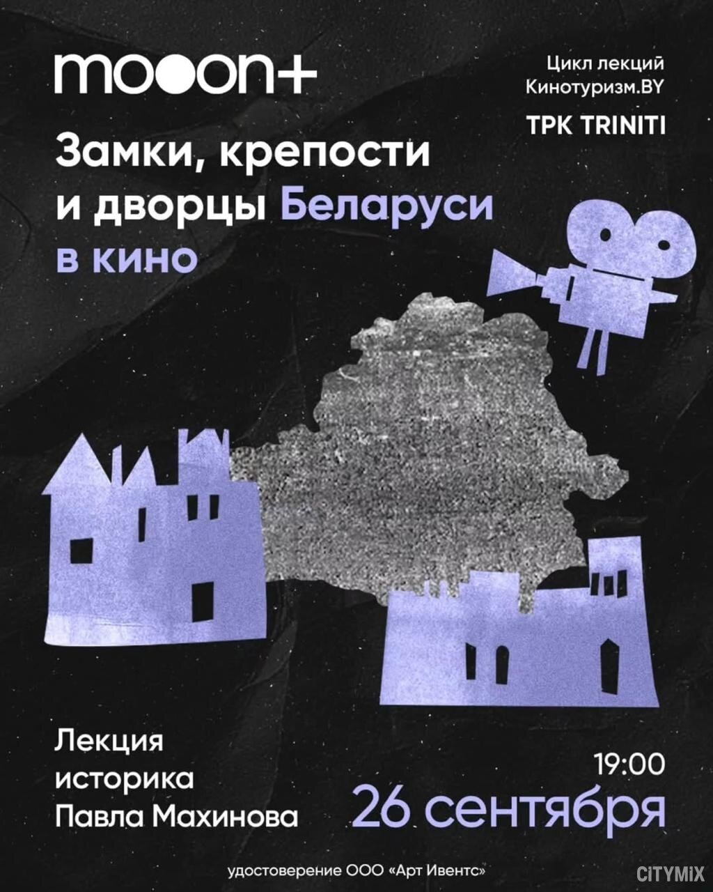 26 сентября в кинопространстве mooon (ТРК Triniti, пр-т Янки Купалы, 87) состоится авторская лекция экскурсовода и киноведа Павла Махинова на тему «Замки, крепости и дворцы Беларуси в кино».