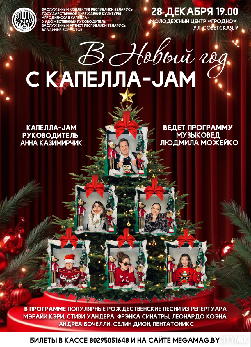 Если вам нужны гарантированные праздничные вибрации — идите сюда. «Гродненская Капелла» исполняет главные рождественские хиты: от Мэрайи Кэри до Фрэнка Синатры и Pentatonix. Ведёт концерт музыковед Людмила Можейко — так что помимо удовольствия будет и познавательно.