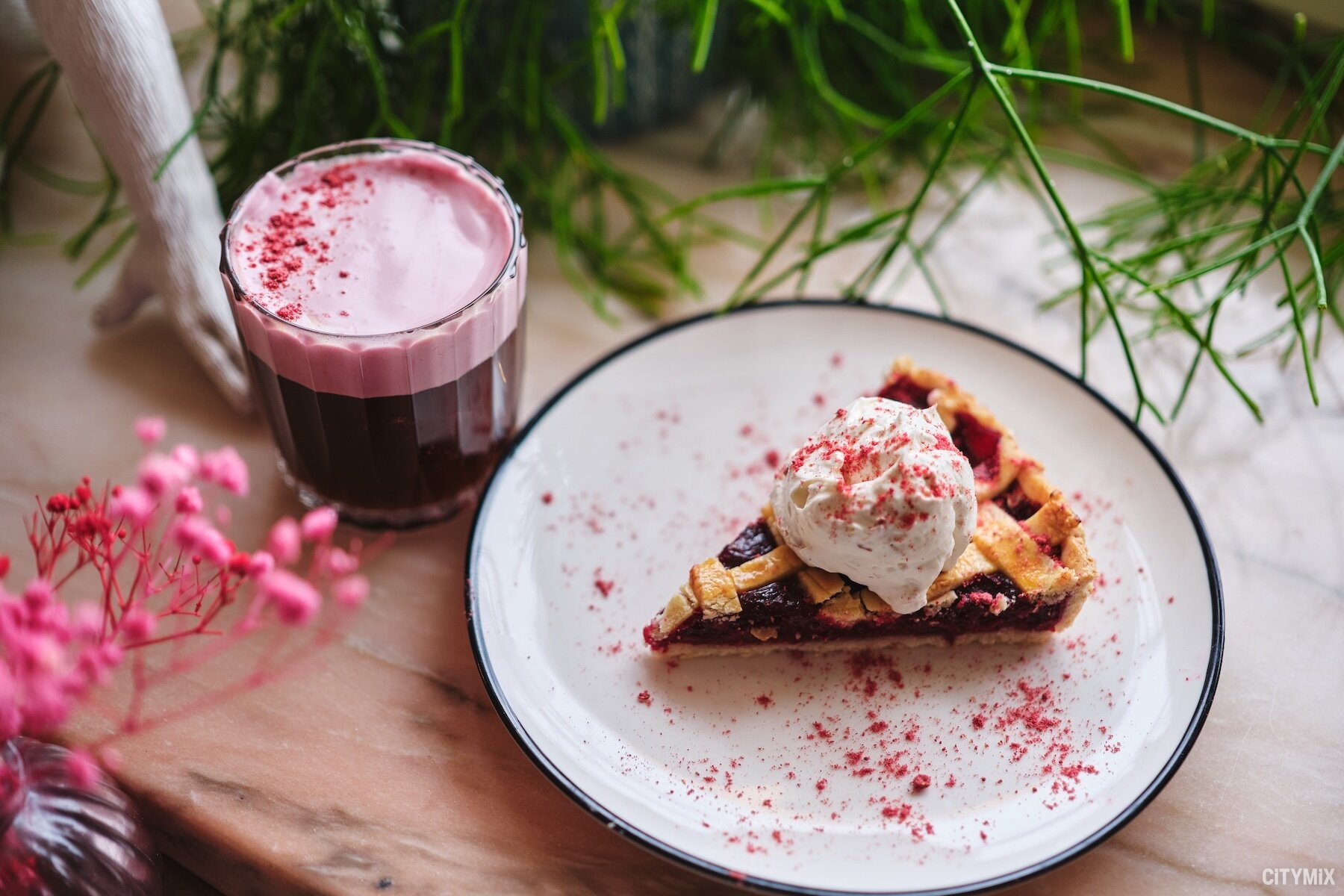 - Пряный американо с вишнево-кокосовой пеной (вишневый соус, кокосовый крем, пудра питахайи и ароматный сироп боба тонка), 250 мл