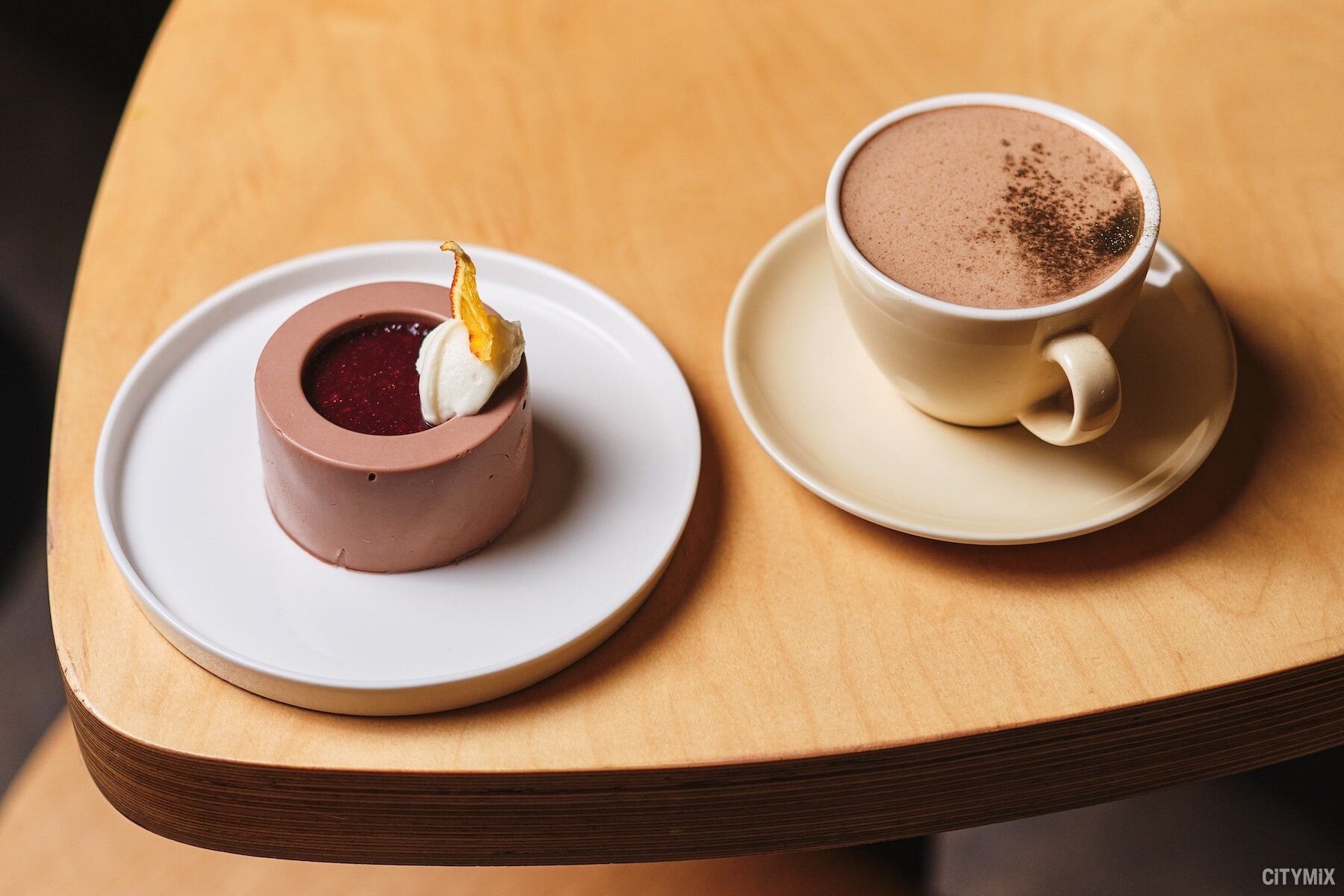 - Шоколадно-малиновый латте с нежной молочной пенкой и взбитыми сливками, 200 мл