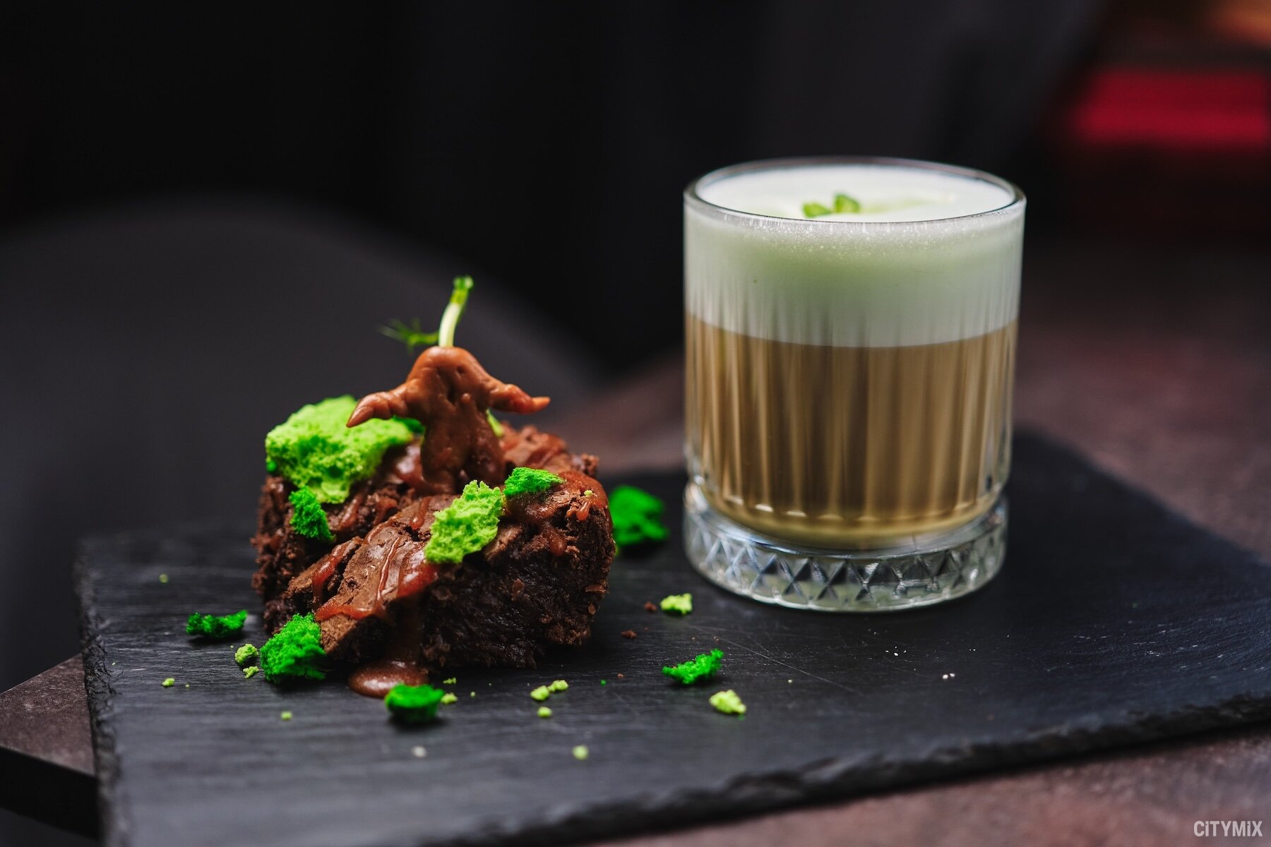 - Брауни «Корень Мандрагоры» (насыщенный брауни на молочном шоколаде, украшенный карамельной мандрагорой из глянцевой соленой ириски), 120 г