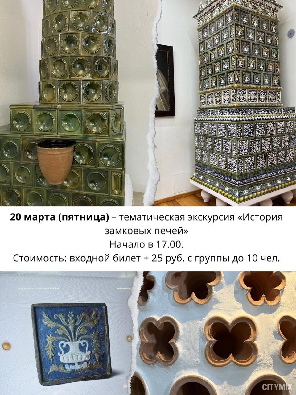 20 марта здесь пройдет программа «История замковых печей». Участникам расскажут о том, как отапливались замки в прошлом, какие технологии использовались и как они влияли на повседневную жизнь.
