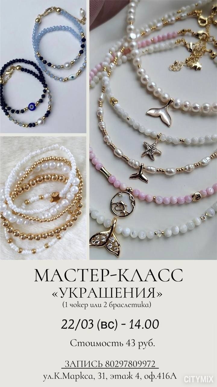 В воскресенье, 22 марта, в 14:00 пройдет мастер-класс по созданию украшений — можно сделать чокер или два браслета.