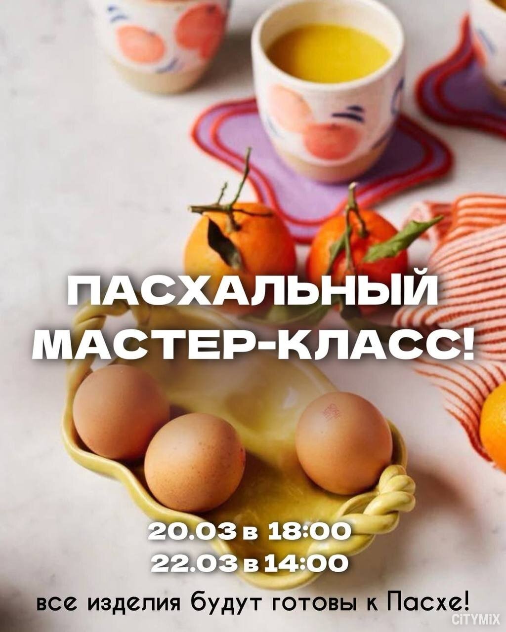 Участникам предложат создать тематические изделия своими руками. Формат подойдет даже новичкам: в процессе помогают мастера, а результат можно будет забрать позже — работы будут готовы к началу апреля.