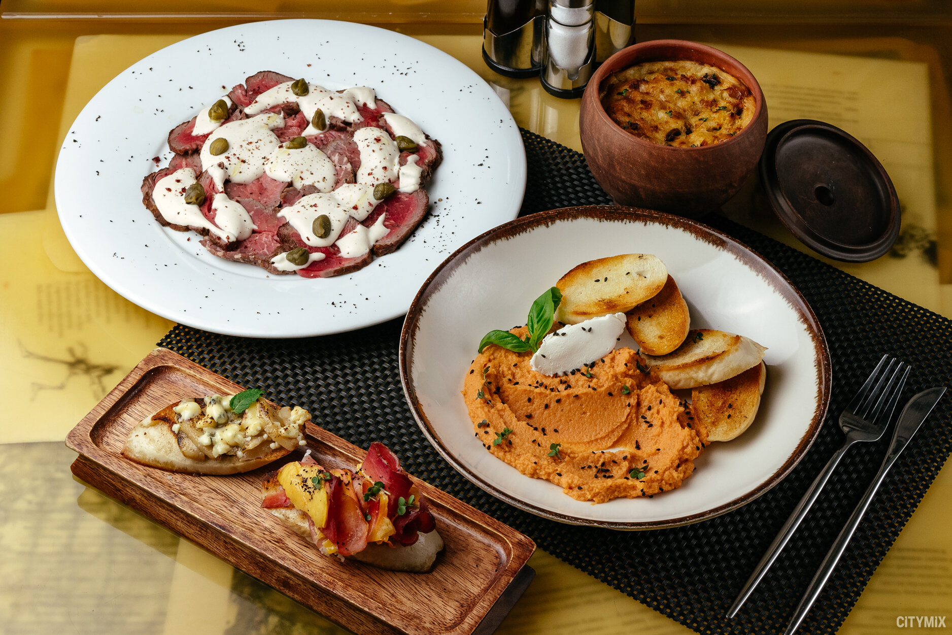 - Карпаччо из мраморной говядины с трюфельным майонезом.