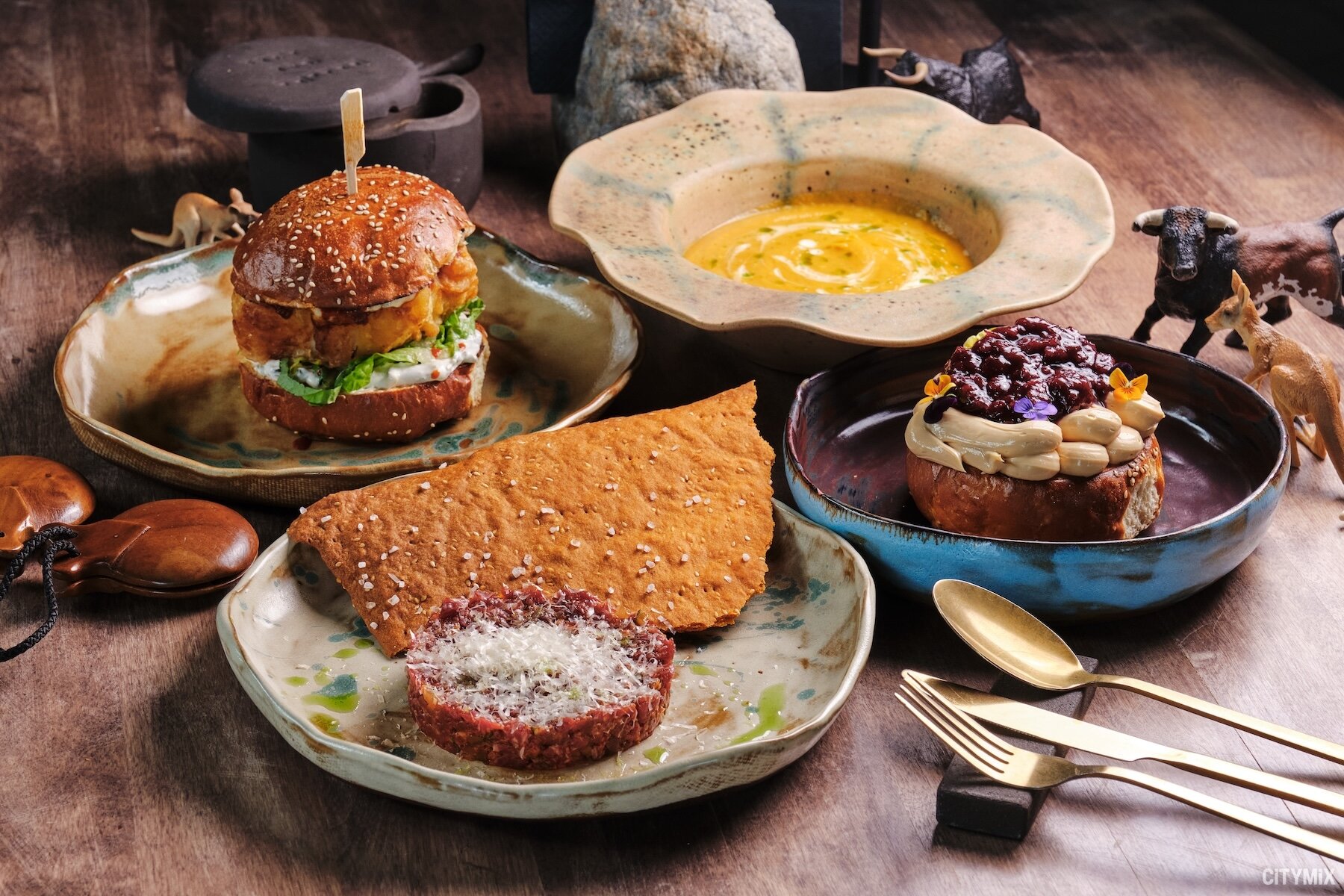 - Стейк тартар из говяжьей вырезки в корейском стиле с сыром пармезан и авторскими крекерами.