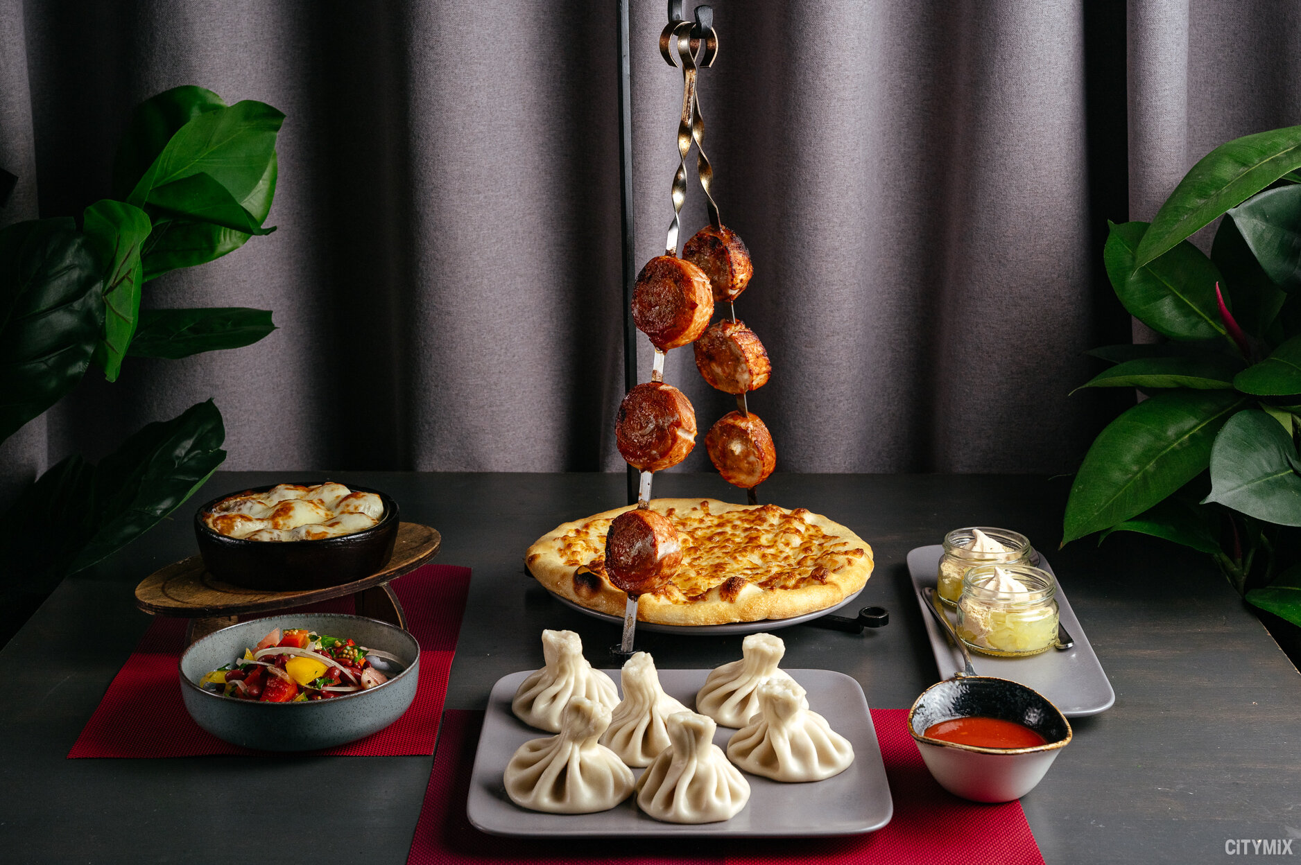 - Шампиньоны запеченные с сыром сулугуни, подаются на кеци.