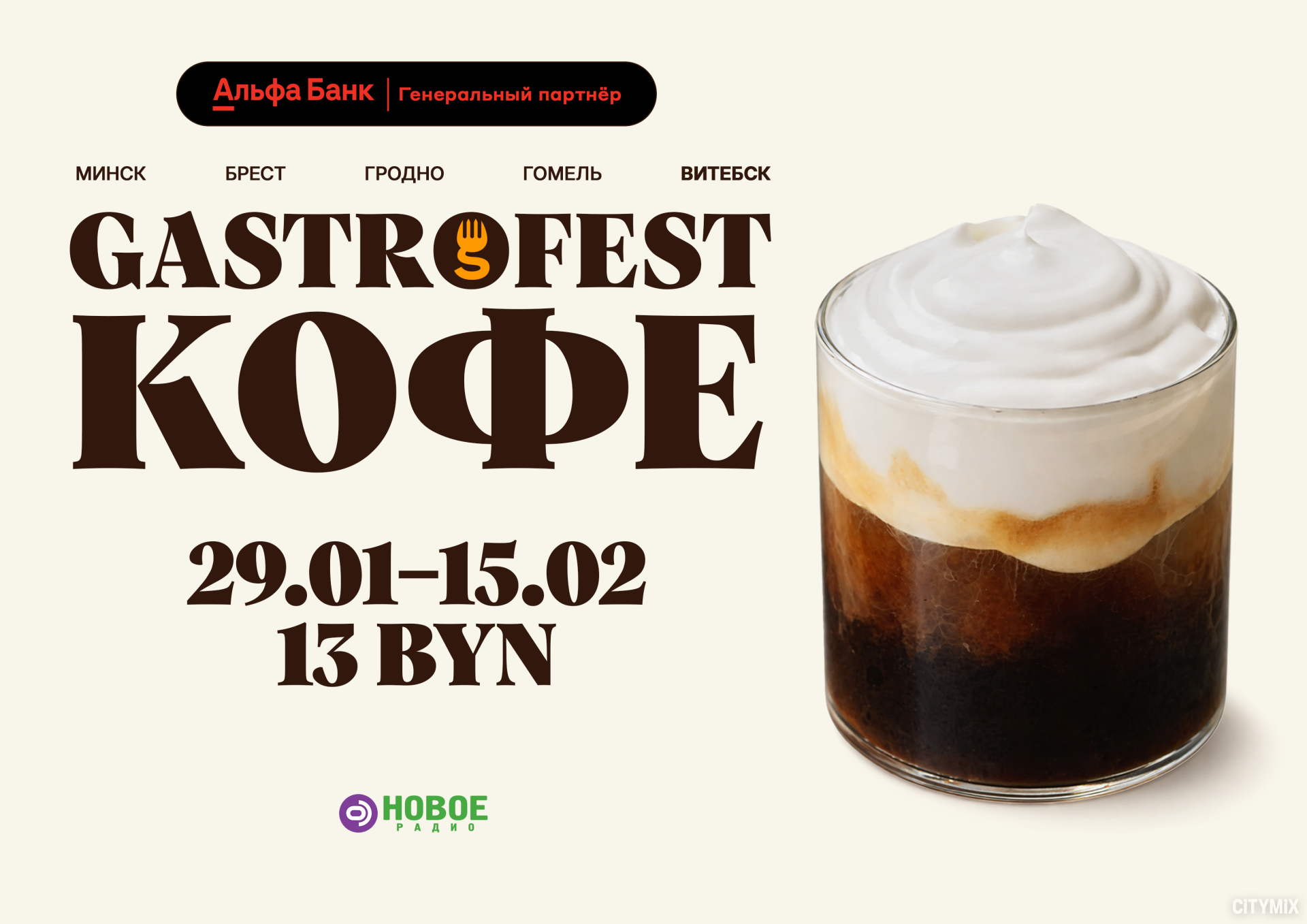 Фестиваль Gastrofest.Кофе был создан для развития кофейной индустрии в Беларуси. Ежегодно кофейни-участники создают оригинальные сочетания кофе и десертов и рассказывают про особенности своих кофейных напитков, чтобы гости фестиваля смогли окунуться в кофейную тематику и открыть для себя новые вкусы.
