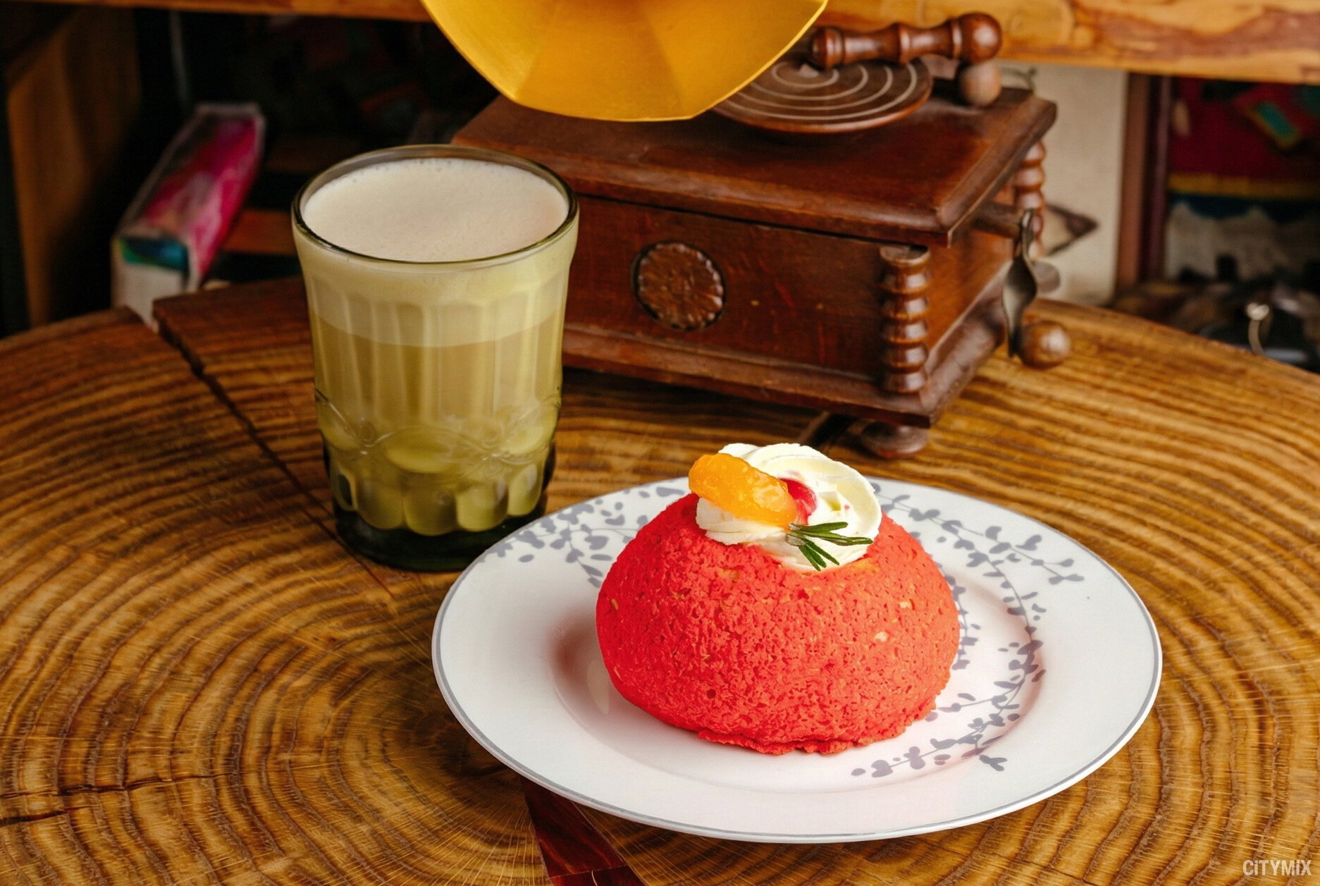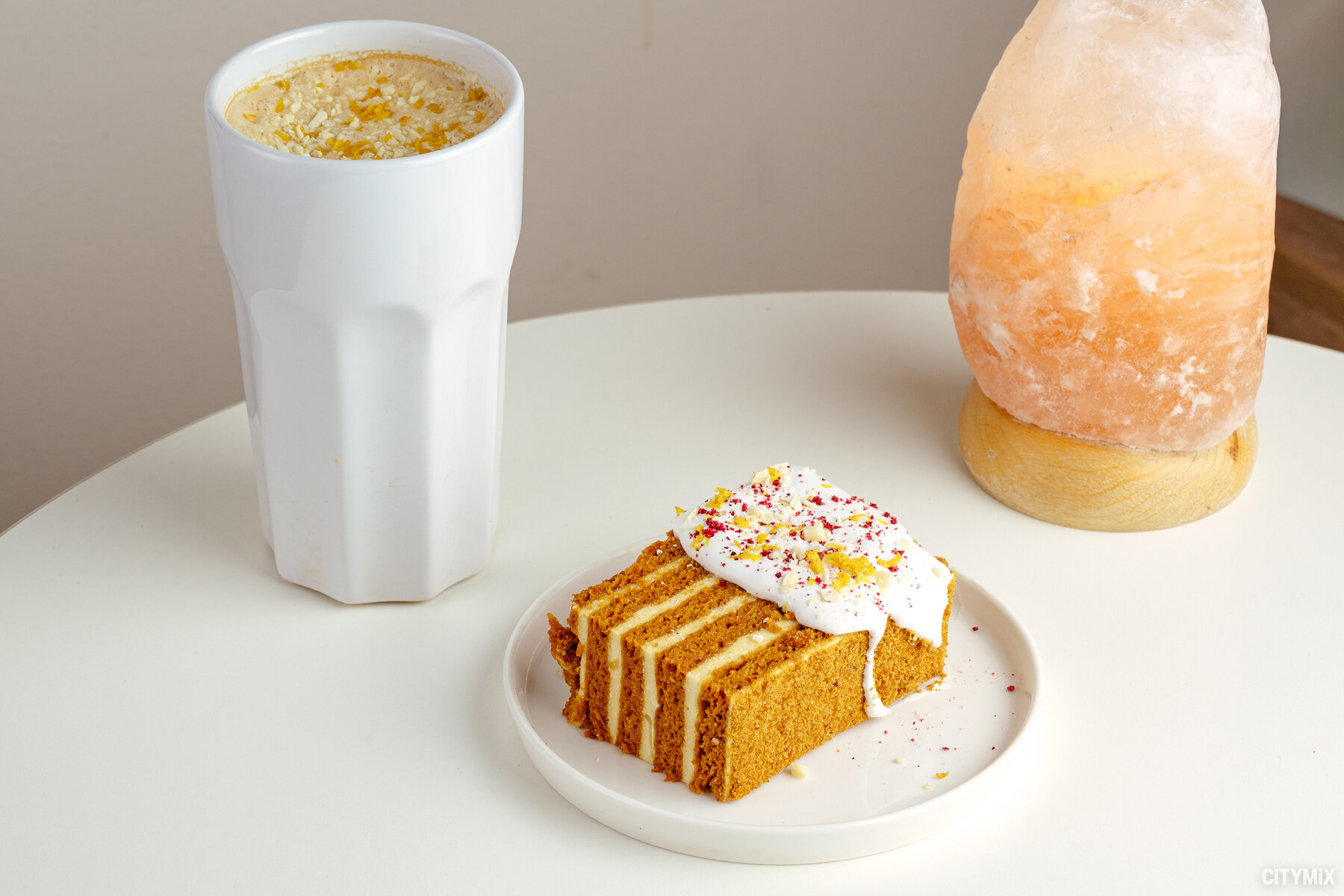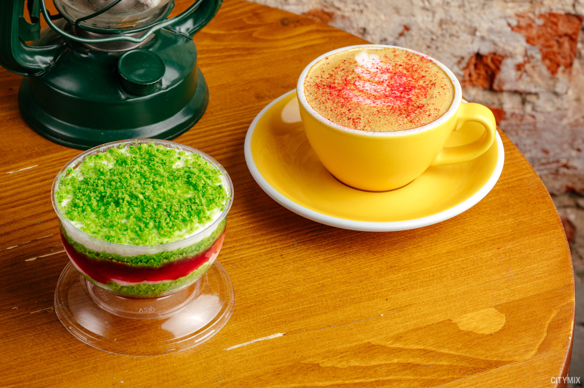 - Десерт «Зелёный бриз» (шпинатно-мятный бисквит, прослоенный малиновым конфи и укрытый облаком крема), 160 г