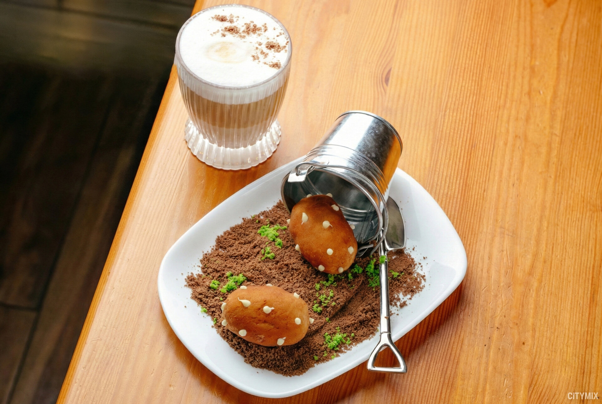 - Тропический латте с хрустящей пенкой (которая приятно ломается под ложечкой, раскрывая тропический рай), 450 мл